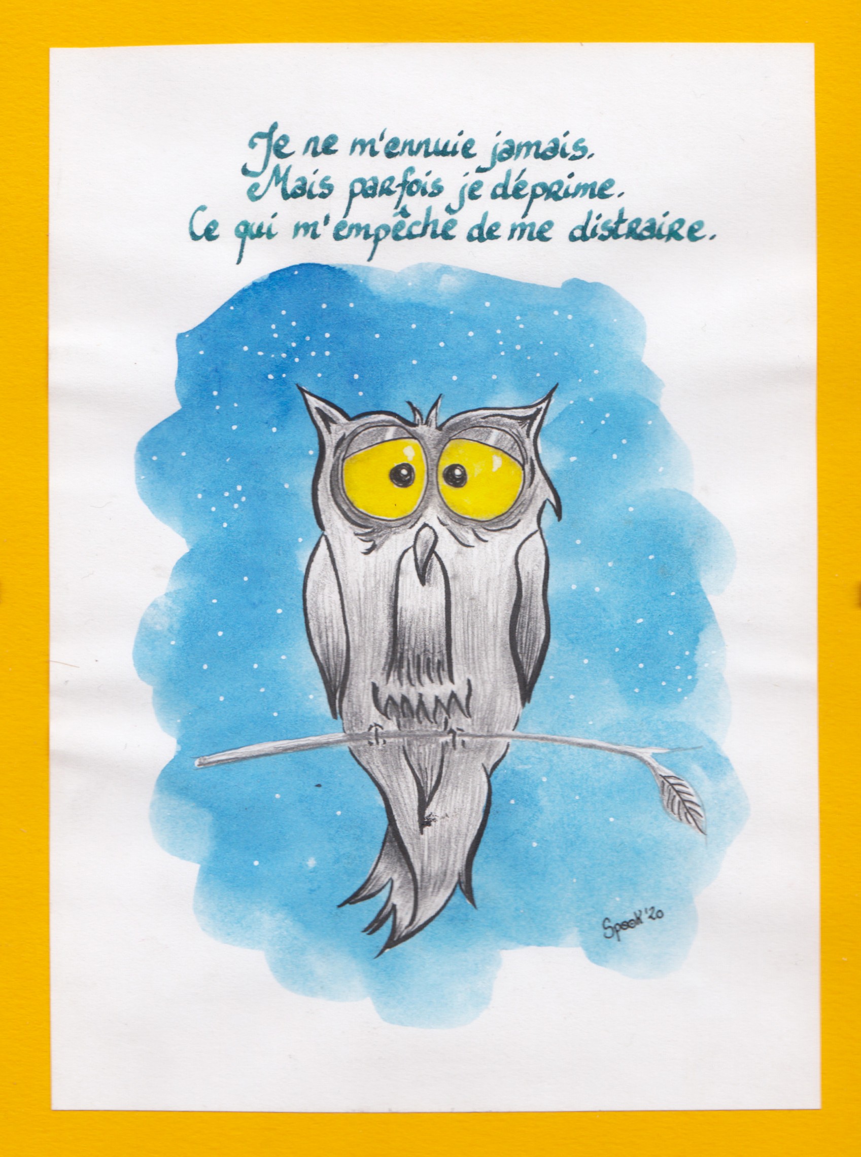 Sire Hiboo Du Roolo en version aquarelle et graphite